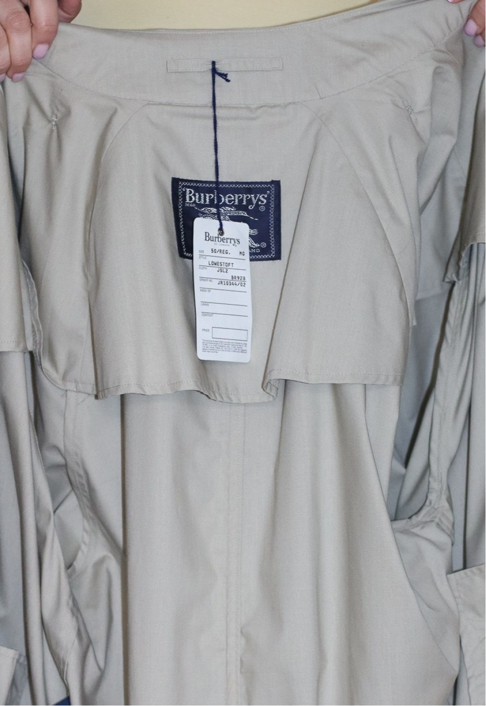 The model is UK 10-12, and the tag is 50 REGULAR. The jacket is brand new with tags, quite light material for a relaxed fee.