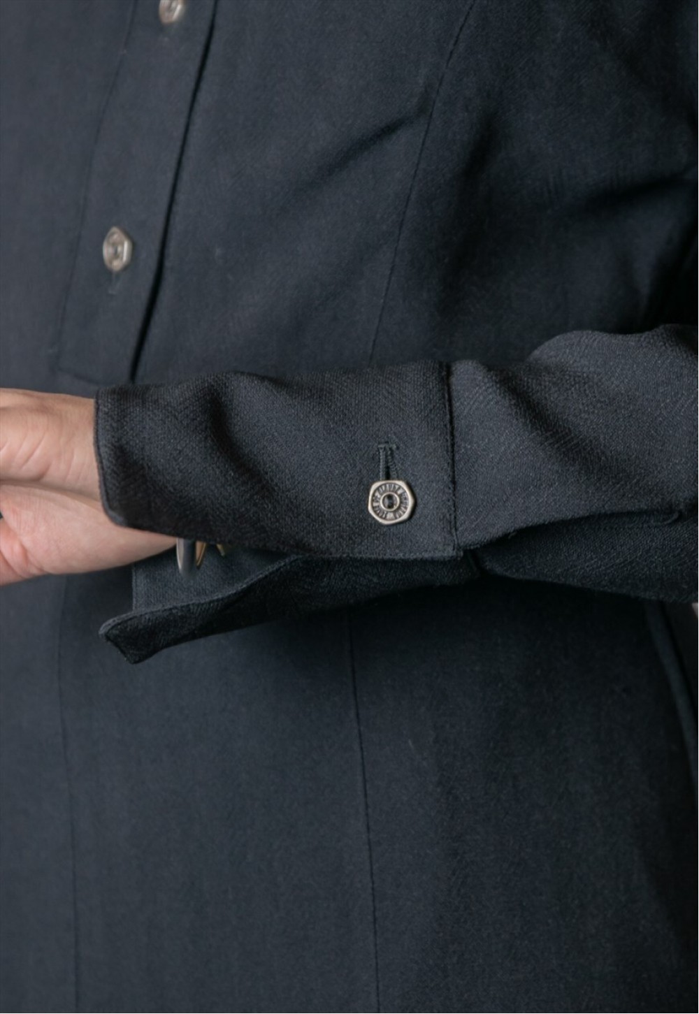 Vintage black CLOUDE MONTANA black midi long sleeved zip fastening on the left side dress with thin inner lining. Made in Italy. UK size not written but looks flexible like 8-10. Model size Vintage black CLOUDE MONTANA black midi long sleeved zip fastening on the left side dress with thin inner lining. Made in Italy. UK size not written but looks flexible like 8-10. Model size on the photo is 8. Measurements: length 37 inches, sleeve 22.5 inches, chest 38.5 inches, waist 32 inches, hips 42 inches.