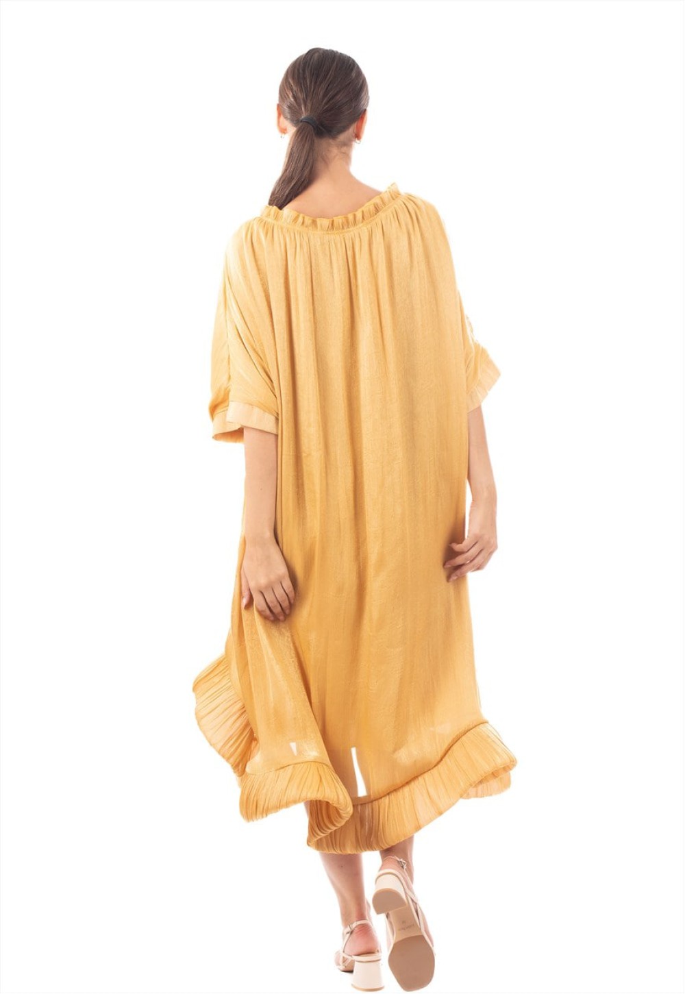 Ruffle Hem Oversized dress with belt in yellow